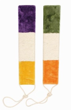 Cat scratcher with sturdy base, eliminates tipping and wobbling. Natural sisal catnip scratch mat, and also a great pet bed. Dangling orange shaped plush ball and hammock add to the fun. Abrasive wear and grip resistant surface helps enhance nail health and prevent cats from scratching your furniture.