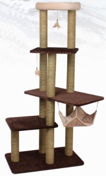 Dangling feather toy adds to the fun.