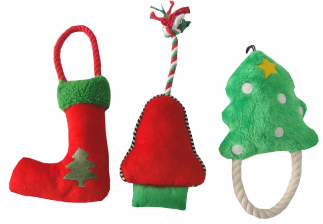 Durable Squeaky Rope Plush Dog Pet Toy Christmas Sock Tree Chew